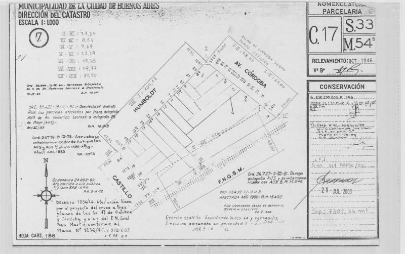 EXCELENTE LOTE SOBRE AV. CORDOBA AL 5400 PALERMO, UBICADO ENTRE LAS CALLES HUMBOLT Y JUAN B. JUSTO, TIENE 8.68 MT. DE FRENTE X 51.73 MT. DE LARGO. IDEAL CONSTRUCTORES. SE PUEDEN CONSTRUIR CON UN SUBSUELO PARA 17 ESPACIOS GUARDA COCHE, 2800 MT. TOTALES, DE LOS CUALES VENDIBLES SON 1550 MTS. POR PLANTA SE PUEDEN HACER 233.11 MTS2 CON UNA ALTURA DE 22.80 MTS.